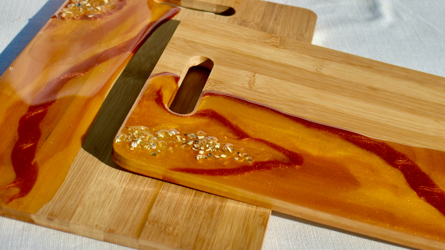 Charcuterie Boards & Resin TraysCharcuterie Boards & Resin Trays: Pronounced "shahr-ku-tuh-ree" These striking bamboo charcuterie/cheese boards...