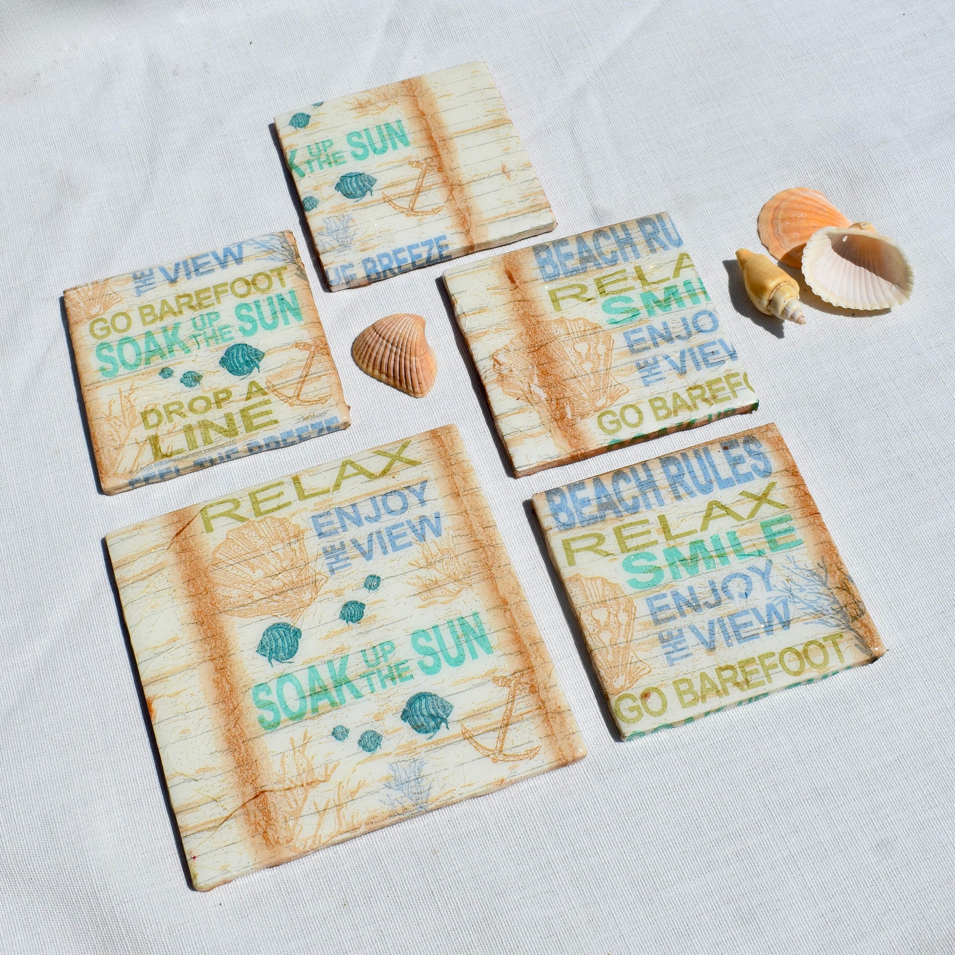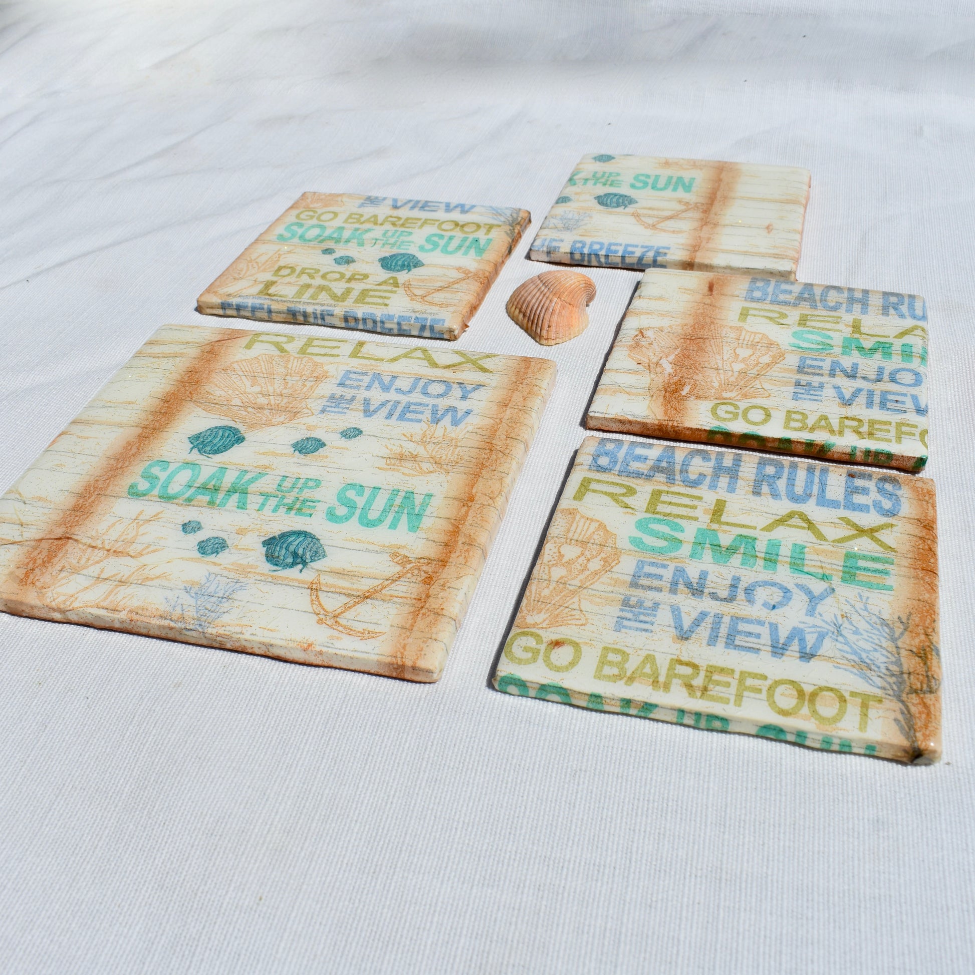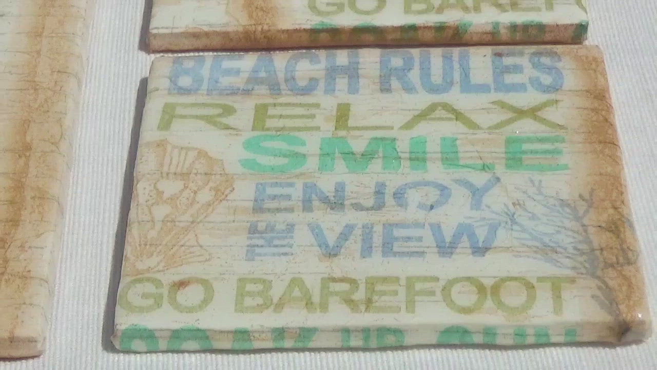 Beach Rules Ceramic Coasters ๐ Beach Lover Coasters Set ๐ Summer Vibes Coasters