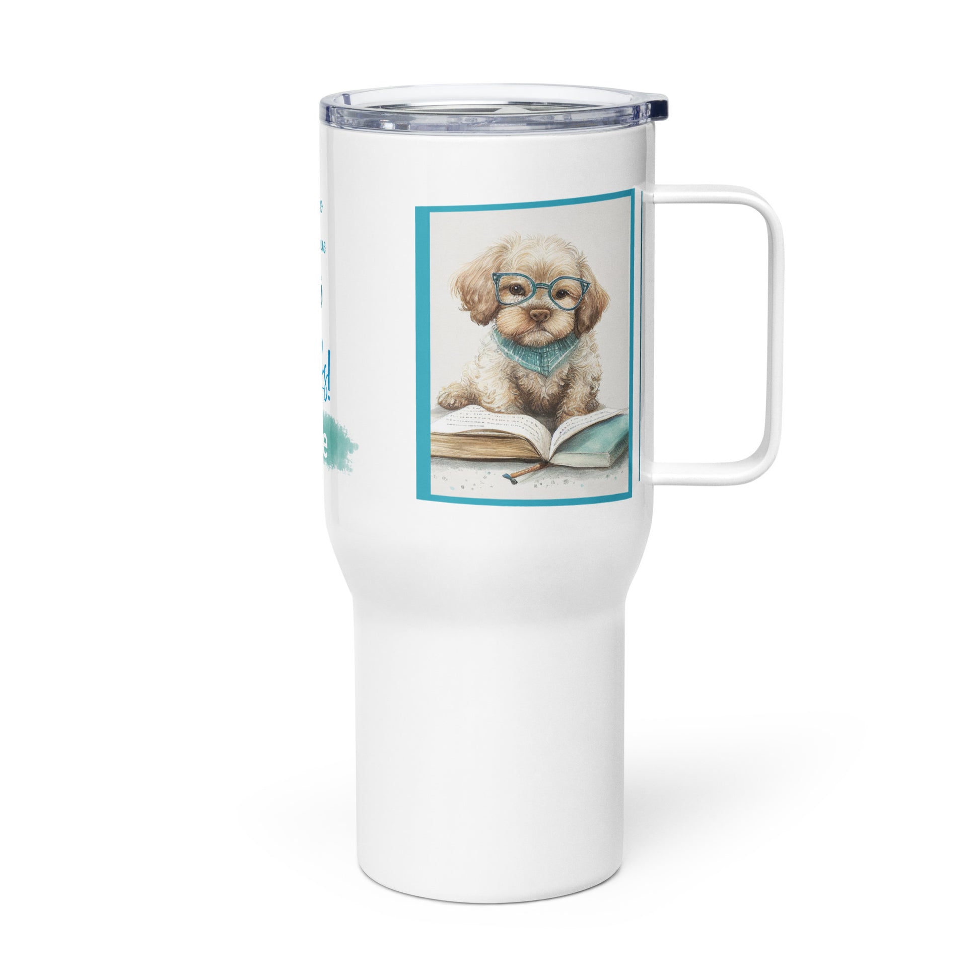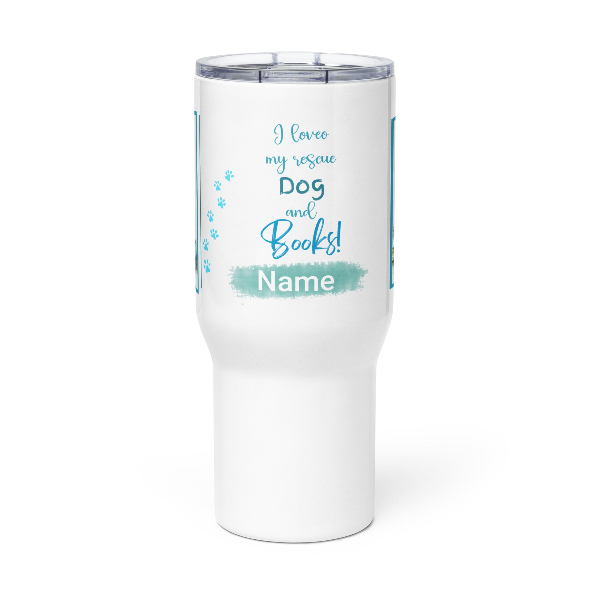 Books & Dog Travel Mug • Rescue Dog & Books Mug • Personalized Dog Mug • Gift for Her• Dog Lover • Book Lover • Bookworm Travel Mug