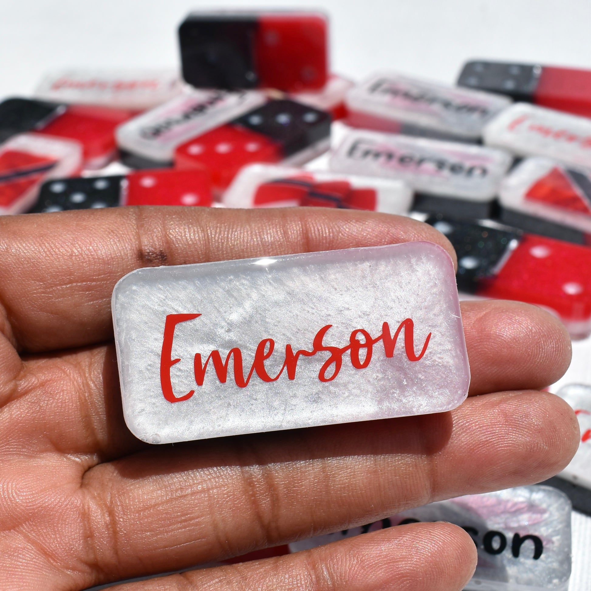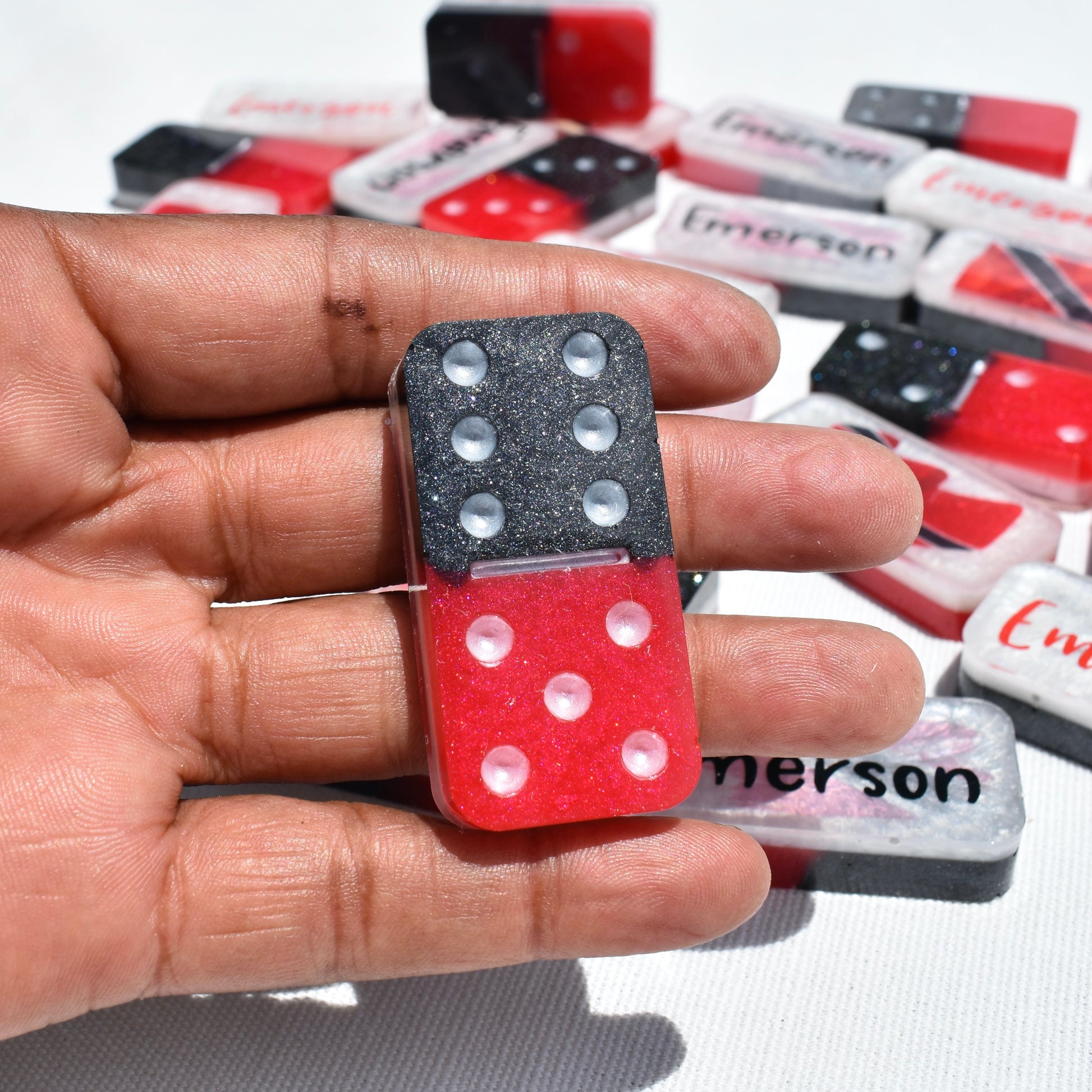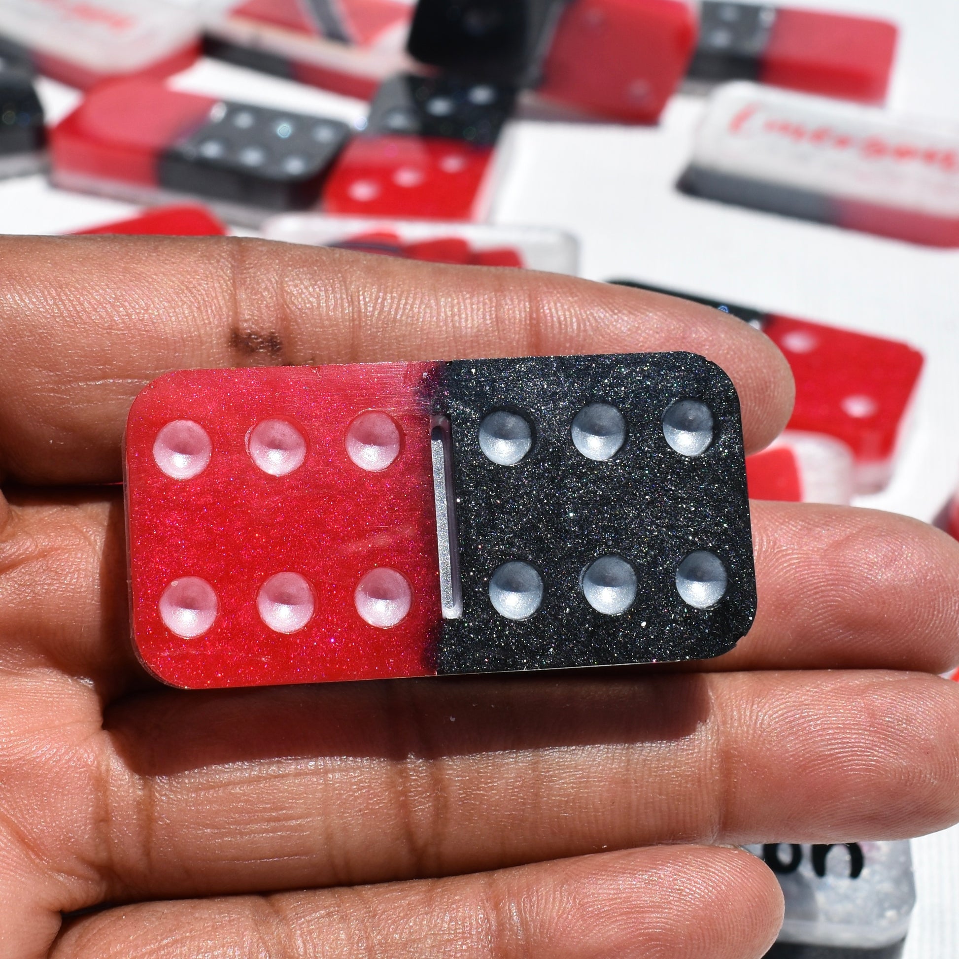 - 28 Resin Domino Pieces: 2” x 1” x .39”